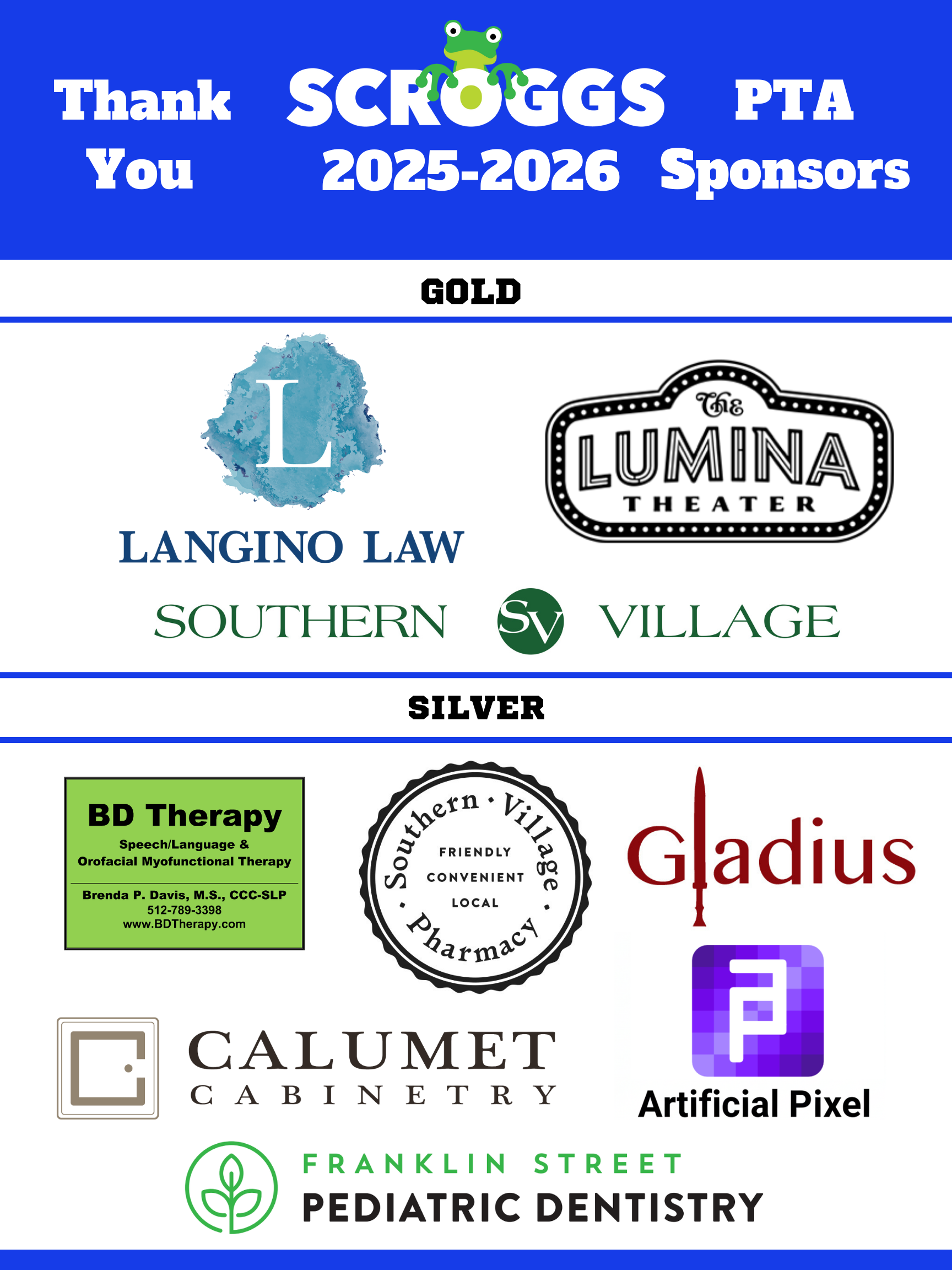 TICKETS: Tickets will be $60 per person until 4/15 and $65 from 4/16 to 4/18. Purchase a teacher’s ticket or a scholarship family ticket for $25. Online ticket purchase options available now. If you would like to purchase using check or cash, please email scroggspta@gmail.com.